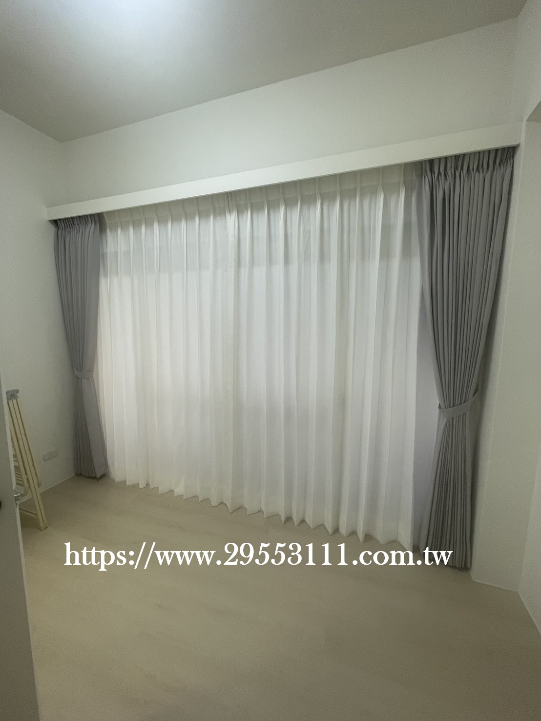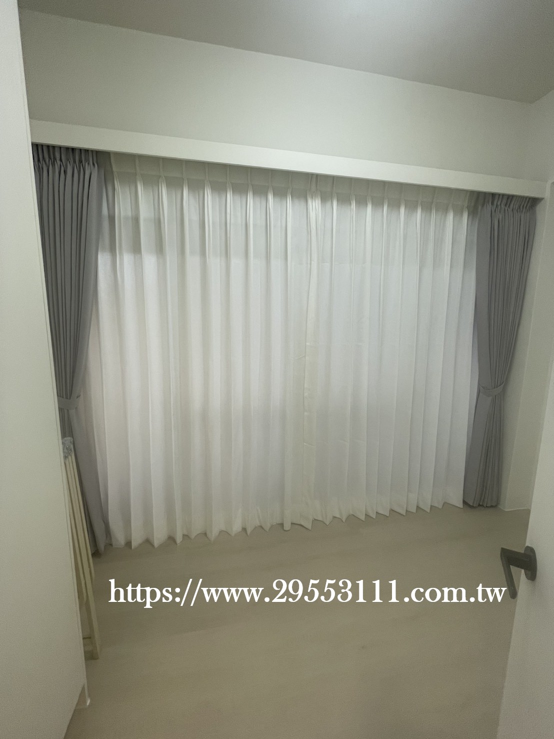 [窗簾裝潢安裝類]2025年8月新北市中和區圓通路全室遮光窗簾/雙層布+紗落地窗簾裝潢安裝/白色款可調光捲簾式窗簾裝潢安裝施工