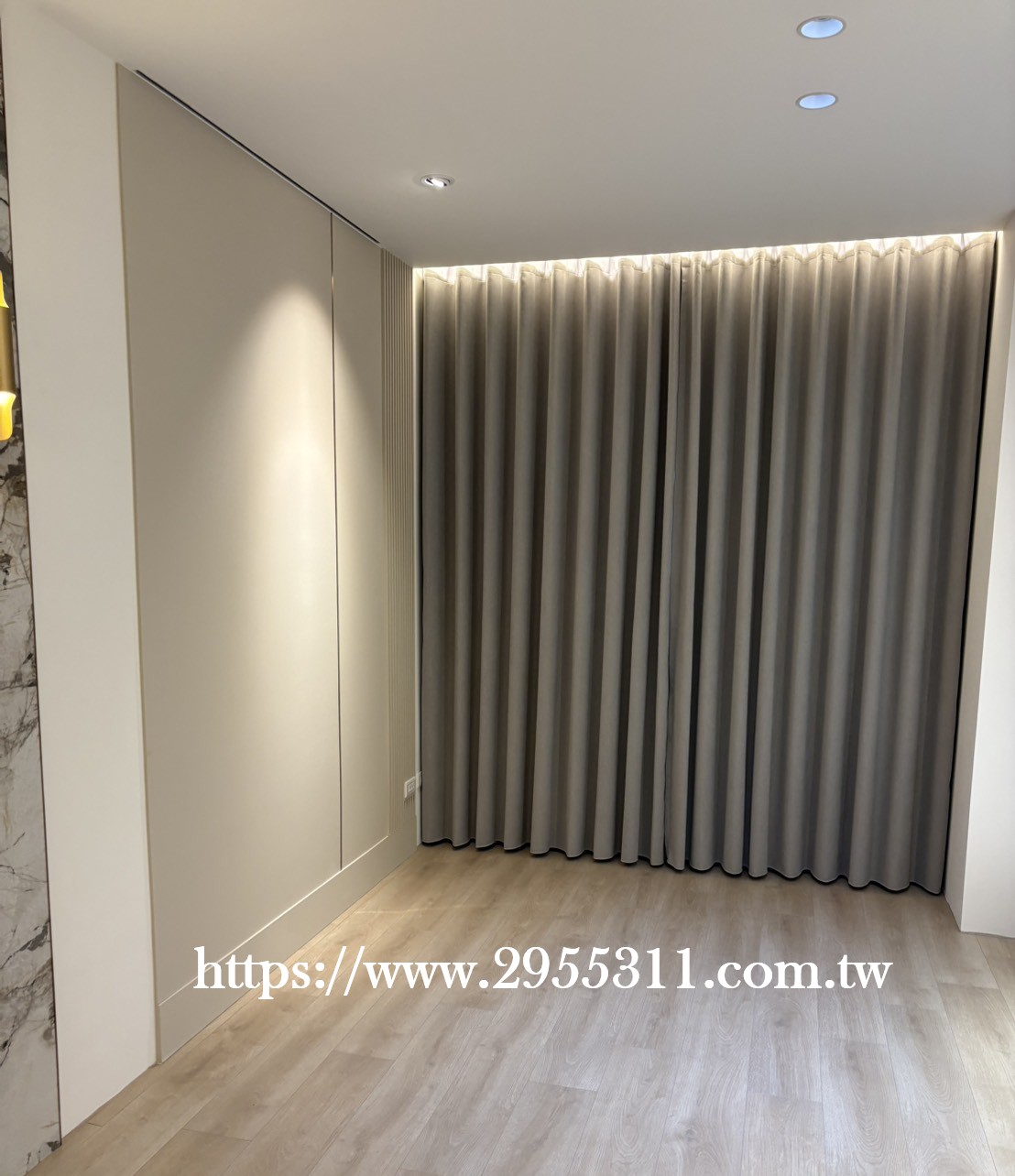 客廳淺灰調落地窗簾裝潢安裝