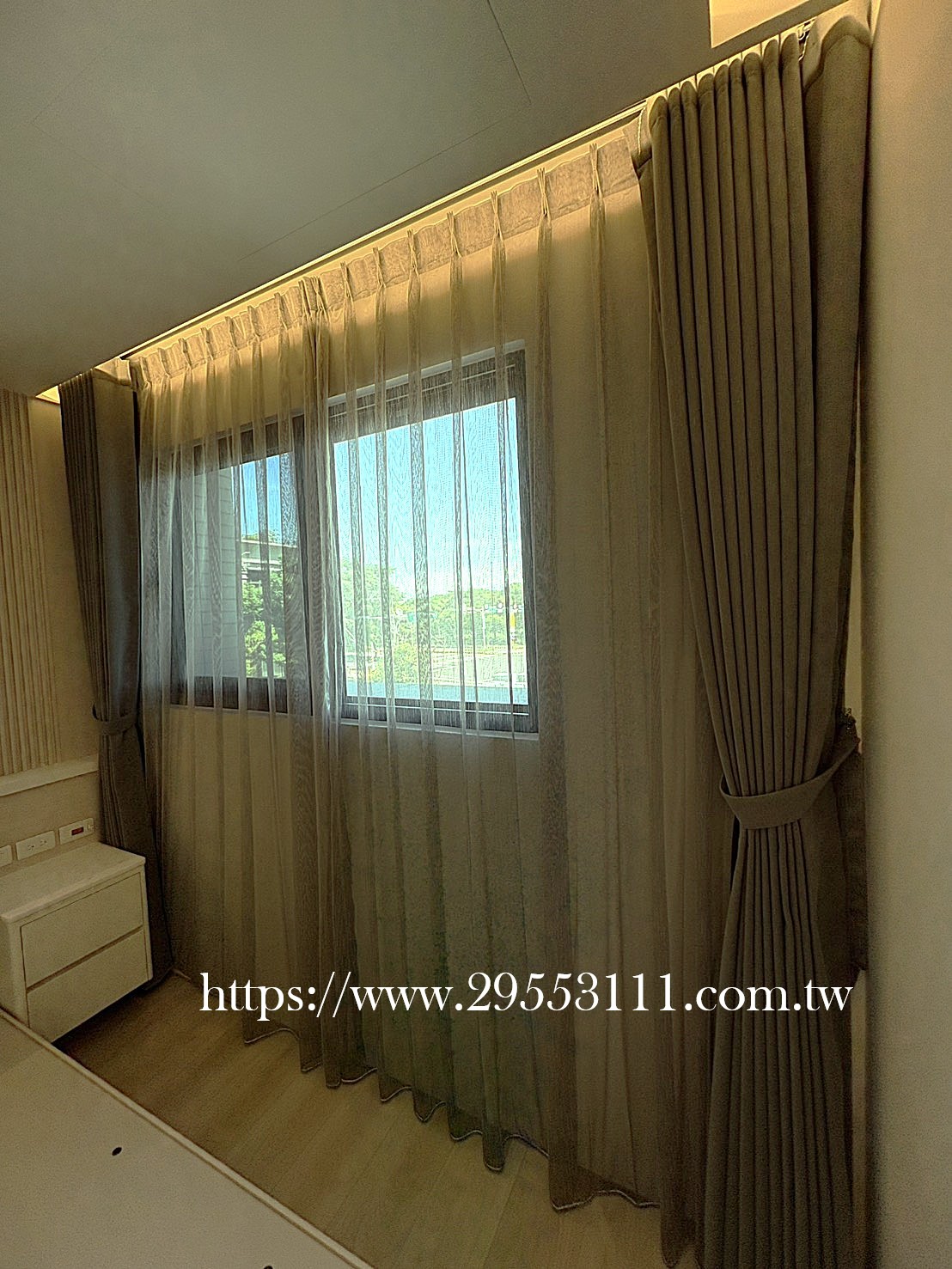 [窗簾裝潢安裝類]2025年9月桃園市大園區青峰路全室遮光窗簾/落地窗簾蛇行簾布+紗/主臥蛇行簾雙層落地窗簾裝潢安裝施工