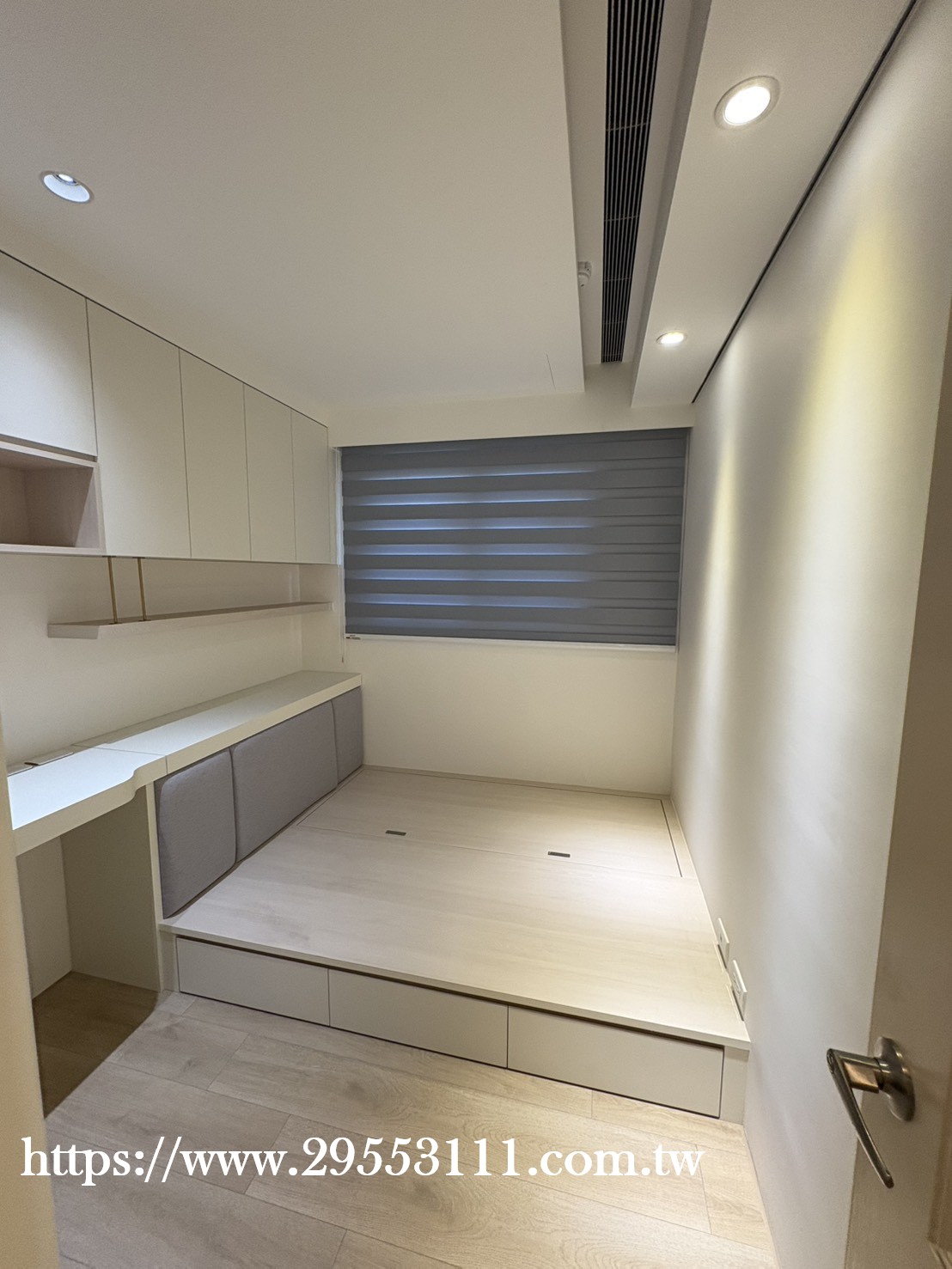 次臥灰色可調光捲簾式窗簾裝潢安裝